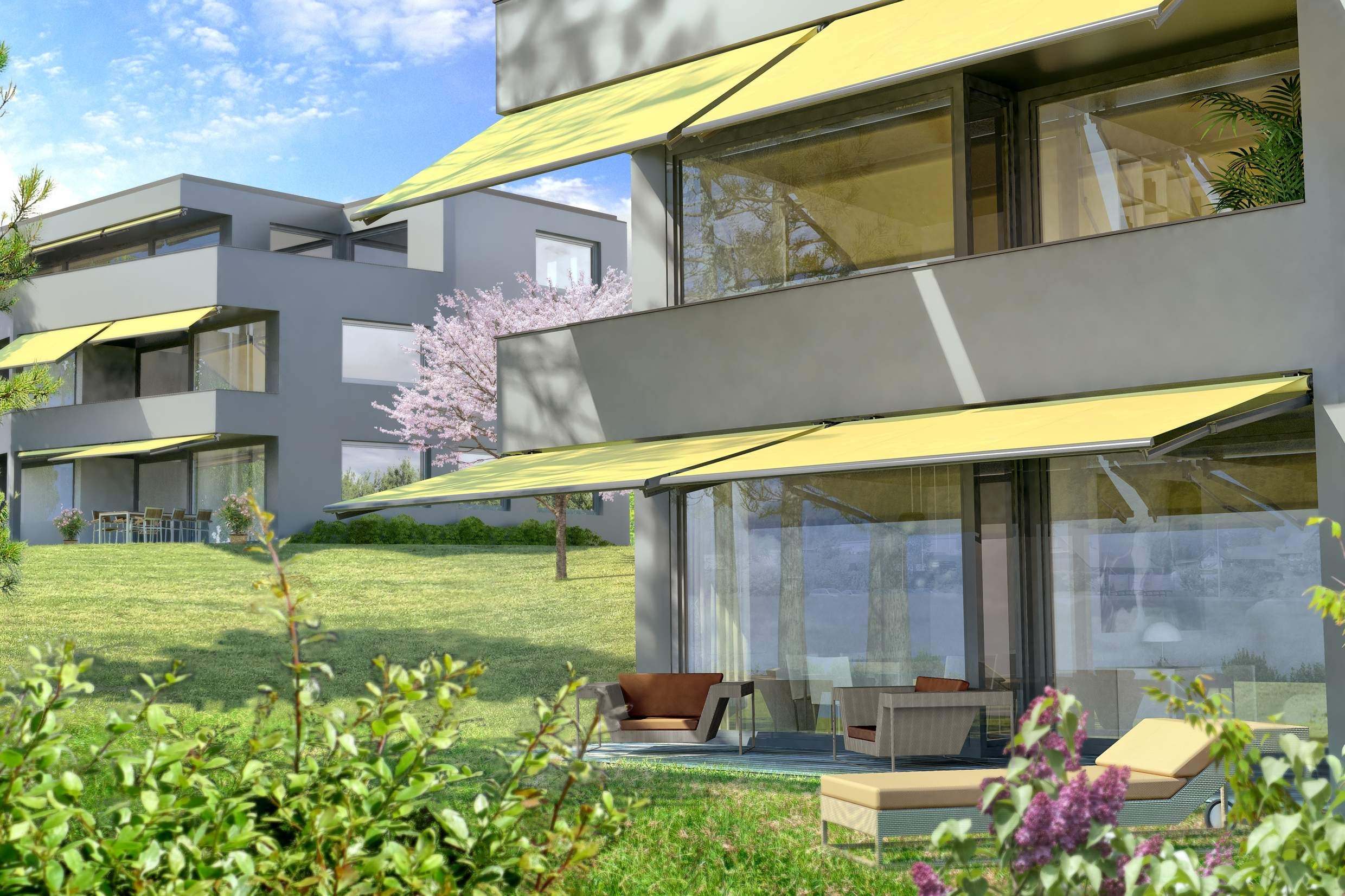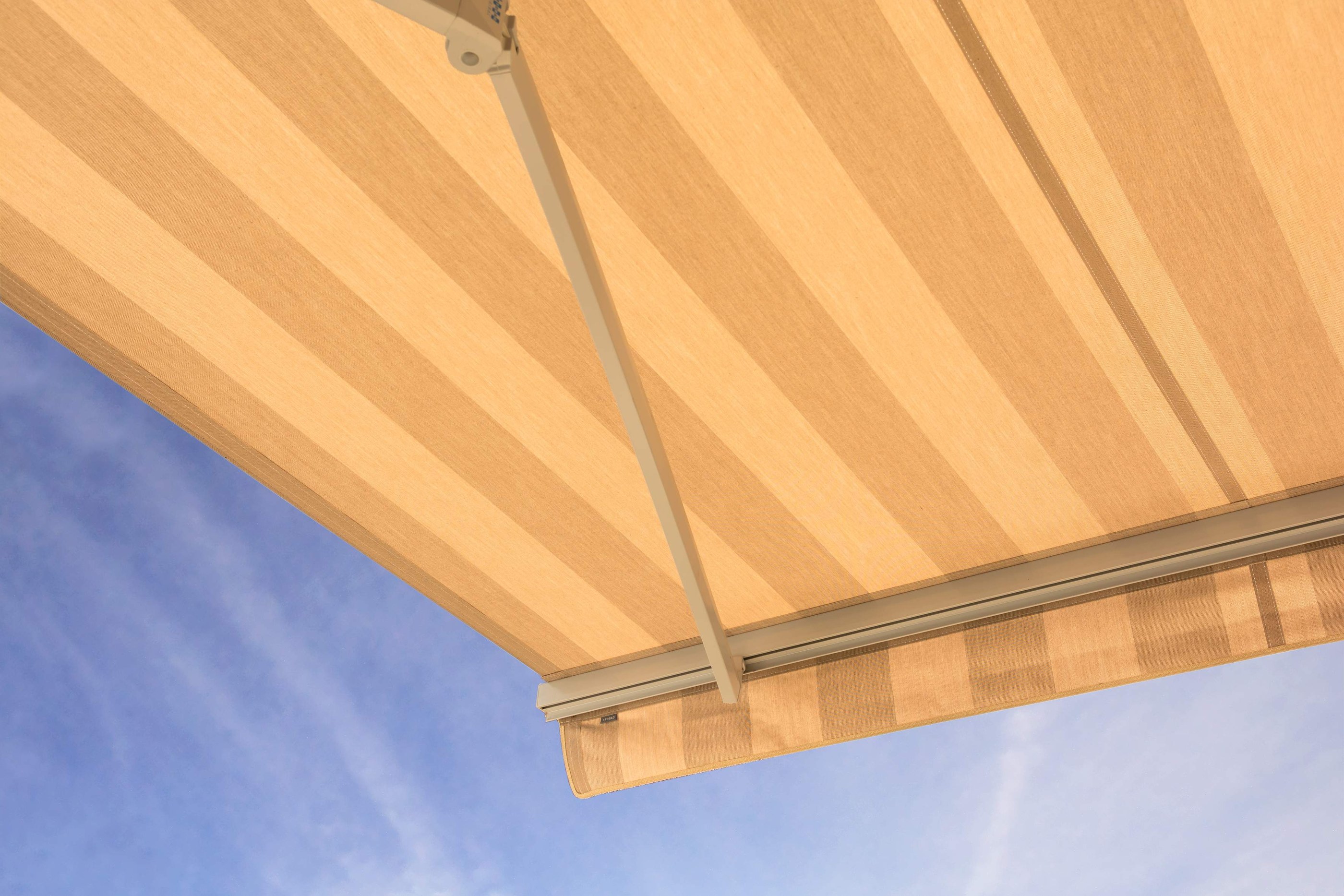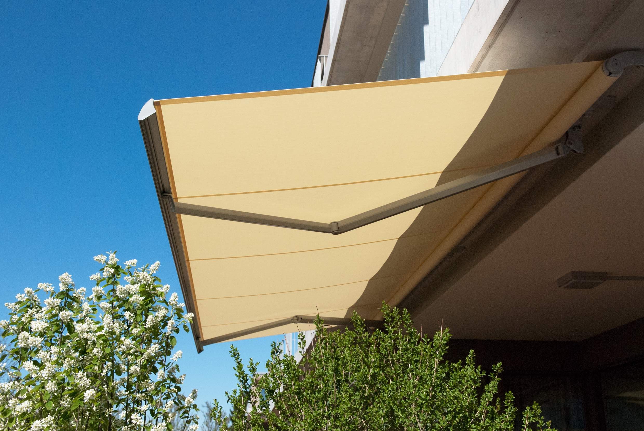 Die AZUR-Markise mit dem Vierkant-Tragrohr ist speziell für den Einsatz bei Mehrfamilienhäusern und im Objektbereich bestens geeignet. Dank verschiedenen Konsolen ist eine Wand-, Decken- oder Dachsparrenmontage möglich. Der stufenlos einstellbare Neigungswinkel von waagrecht bis 60° erfüllt beinahe jeden Beschattungswunsch.
